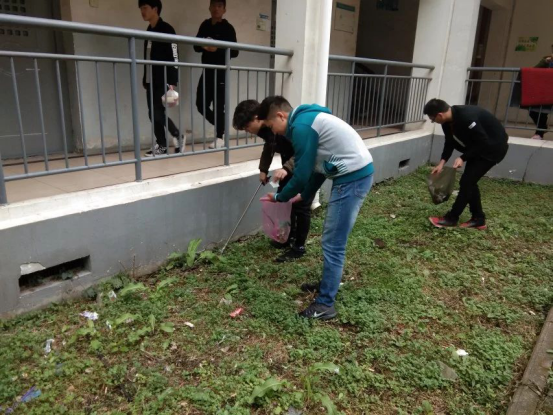 pp电子官方网站学生党支部组织清扫公寓楼道天井