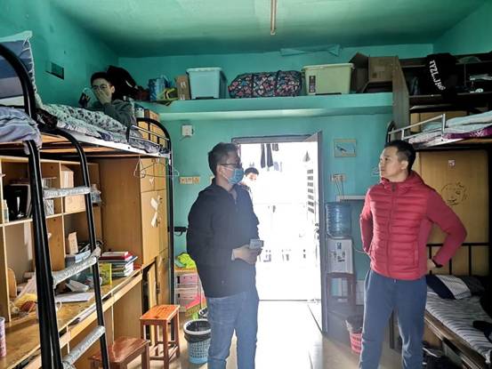 教师和学生干事分组对pp电子官方网站学生内苑八号楼、内苑十一号楼、学生北苑一号楼、北苑二号楼所在寝室进行卫生安全和防疫管控情况检查,在检查过程中,老师们再次强调学校防疫制度,提醒同学们要注意继续做好防疫工作,要特别注重个人卫生问题:戴口罩,勤洗手,勤洗澡,勤更衣,勤洗衣,寝室常通风,不堆积垃圾,不吃生冷食物,常晾晒衣物床被子等,继续做好防疫常态化管理,出入校门打卡,早中晚健康上报,非必要不出校门,不随意离校、离汉等。在走访过程中,老师们还细心提醒同学们周末要大幅度降温,同学们要注意添加衣服,注意保暖,谨防感冒。