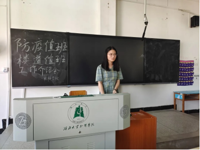 为深入贯彻落实省市关于2021年秋季开学工作的有关文件精神,切实做好疫情防护工作,pp电子官方网站于9月8日12:15在知真楼301召开了防疫值班及楼道值班动员会。pp电子官方网站学生党支部指导老师石晶晶出席会议。