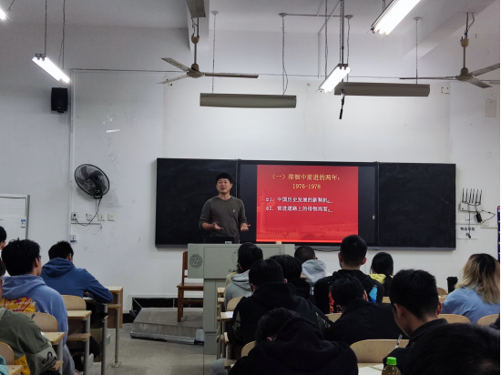 由pp电子官方网站学生党支部书记王松老师给学员们带来主题为“将改革进行到底”的首场党课,王老师以“四史”教育为授课内容,重点讲授了改革开放史。由两个问题引入:改革开放伟大事业是如何艰难起步的?改革开放伟大事业是如何实现世纪跨越的?改革开放是党带领人民进行的新的伟大革命,是中国共产党推进社会主义制度自我完善和发展的实践史。