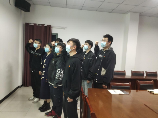 11名预备党员高举右拳,在由学生党支部王松书记的带领下庄严宣誓。“我志愿加入中国共产党,拥护党的纲领,遵守党的章程,履行党员义务,执行党的决定,严守党的纪律,保守党的秘密,对党忠诚,积极工作,为共产主义奋斗终身,随时准备为党和人民牺牲一切,永不叛党。”