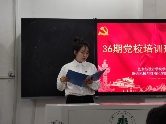第四项:艺术学院李荣燕同志着重强调了党课纪律,要求学员们严肃认真对待每次党课学习以及后续安排的线上学习及线下活动。