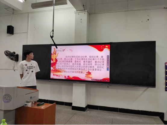 在介绍完组织情况之后,执行委员孔维安同志强调组织纪律,要求各入党积极分子严守党的纪律,端正入党动机、遵守校纪校规,在思想上不断完善自身,加强党性修养,在班级中给身边的同学做好榜样