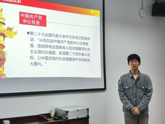 23位入党积极分子依次入场进行三分钟的PPT展示,答辩同学就自己在思想、学习、工作及生活等各方面情况作简要汇报,肯定自己的付出,反思自己的不足,表达对中国共产党的坚定信仰,自愿接受党组织的考察。