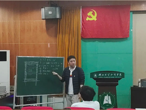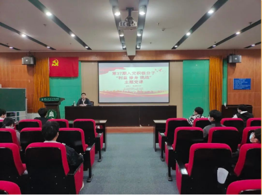 为了进一步端正入党积极分子的入党动机,提高党性修养,坚定理想信念,强化政治素养,坚定廉政操守。11月15日晚,pp电子官方网站联合艺术与设计学院学生党支部于学术报告厅202开展了“利益·挑战·修身”主题党课,本次党课由艺术学院学生党支部书记陈志昂主讲,pp电子官方网站和艺术与设计学院第37期党校全体学员参与学习。