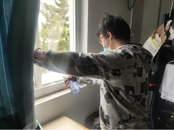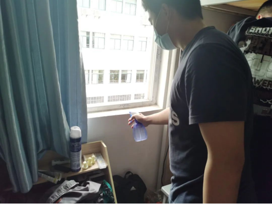 宿舍消杀阻病毒 认真负责护健康