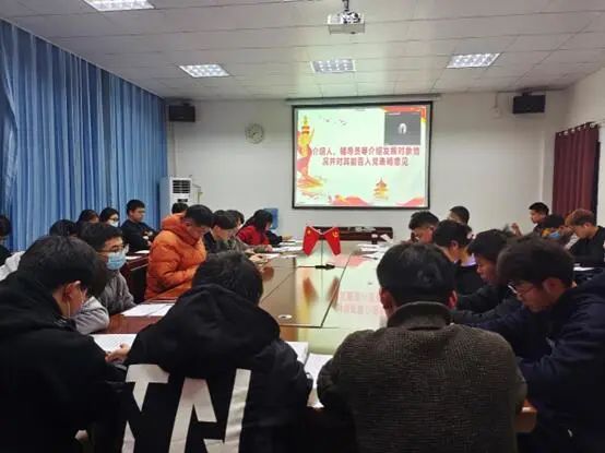 为进一步加强党员队伍建设,将优秀学生吸收进党组织,增添党员新生力量,赓续红色血脉,2022年12月5日晚上18:30,pp电子官方网站第二党支部于知真楼311会议室召开预备党员接收会议,讨论接收丁鹏等12名同志的入党问题。pp电子官方网站党支部书记王松、指导老师石晶晶、辅导员李伟健,教师入党介绍人及全体在校学生党员,12位发展对象参与此次会议。