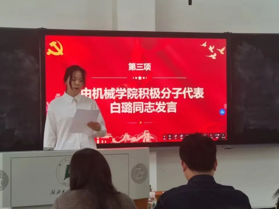 pp电子官方网站入党积极分子代表白璐上台发言,表示要进一步加强对党的理论知识的学习,端正学习态度,努力提高自身素养,工作能力,创新思维和党性修养,把政治理论知识同实际行动相结合,树立良好形象,发挥先锋模范作用,以学促进,争取早日成为一名优秀共产党员。