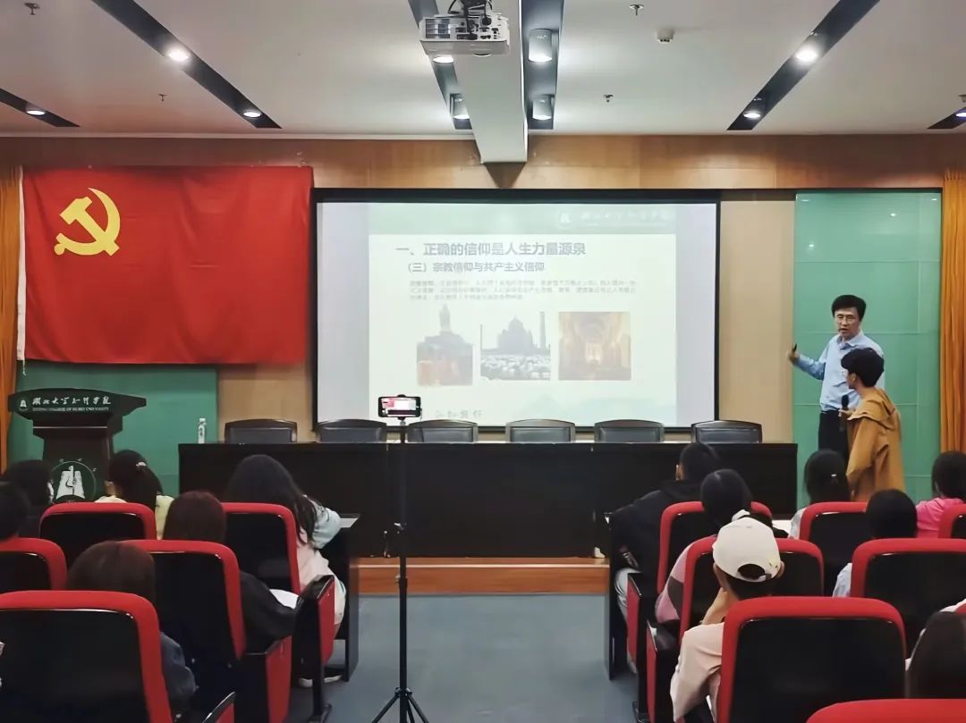 首先,正确的信仰是人生力量源泉,高校长以为何谈信仰,什么是信仰,何为宗教信仰与共产主义信仰告诉同学们信仰是人生精神支柱的基石,是人生力量之源。