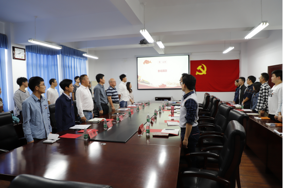 会议第三项,由陈驰同志带领全体党员面向党旗重温入党誓词。