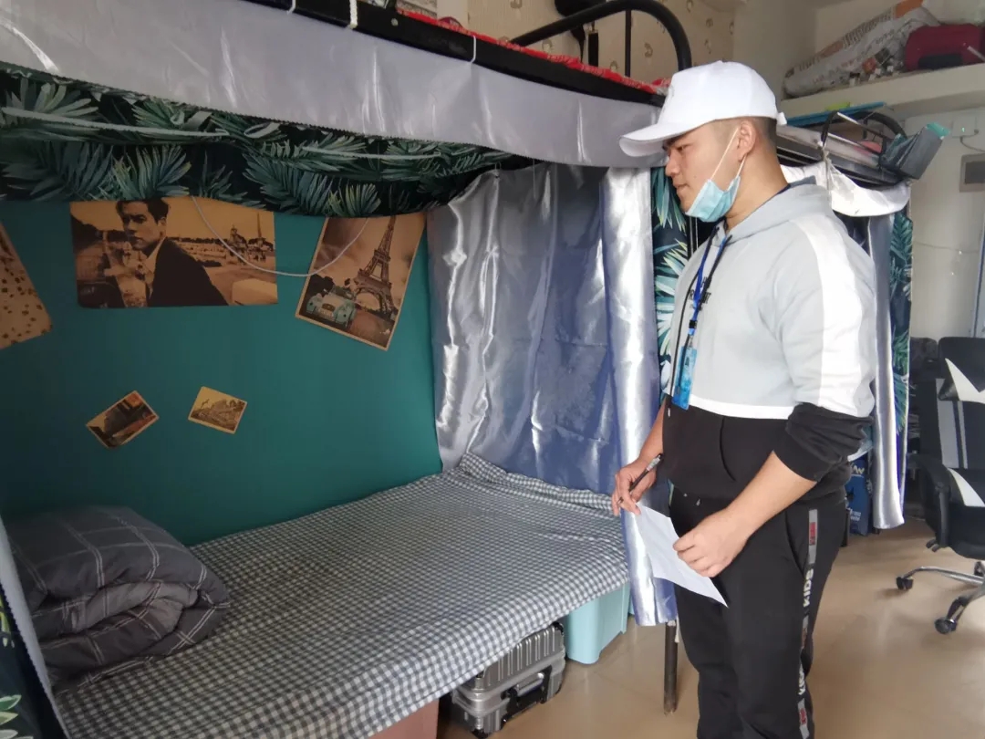 在检查过程中,评分老师对卫生做出点评和指导,各位同学积极配合,极大地提高了检查人员的效率。
