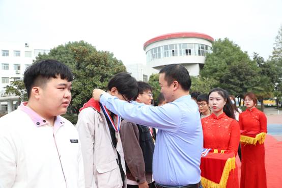 紧接着,在庄重激昂的音乐声中,举行颁奖仪式。pp电子老师分别为获奖的代表队颁奖表彰。