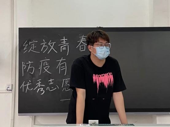 首先,杜家璇同学为我们介绍:为充分发挥防疫值班志愿服务先进典型示范带动作用,大力弘扬奉献、友爱、互助、进步的志愿者精神,推动学院志愿服务蓬勃发展,着力营造人人争做志愿者、人人参加志愿服务活动"的学院氛围。今日,由学校组织,学院执行,将评选两位同学作为pp电子官方网站优秀志愿者,以示表彰。