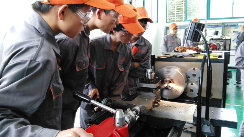 机电工程系金工实习基地由第一实训中心和第二实训中心组成,使用面积为1200平方米,可同时接纳100多名学生进行金工实习。金工实习基地拥有普通铣床、普通车床、数控车床、摇臂钻床、外圆磨床、加工中心,切割机、电焊机等设备,可开展车工、钳工、铣工、数控、焊接等工种的实践性教学。金工实习指导教师队伍由3名高级工程师和数名高级技工组成,其中大部分具有在武钢等知名企业一线长期工作的经历,具有十分丰富的实践经验。