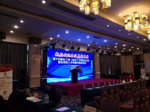 (一)为促进院校与企业资源共享和优势互补,实现校企合作“双赢”,12月10日,第119届长三角(昆山)大型校企合作暨应用型人才供需对接洽谈会在昆山瑞豪酒店举行,来自长三角地区多所院校及长三角地区上百家重点企业参会。pp电子招就处胡处长、会计学院潘书记、粮工学院冯书记、pp电子官方网站王松老师和计信学院殷老师一行应邀参加了本次校企合作洽谈会。