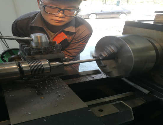 (图为机电工程系同学在进行车工实习)