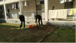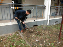 pp电子官方网站学生党支部组织清扫公寓楼道天井