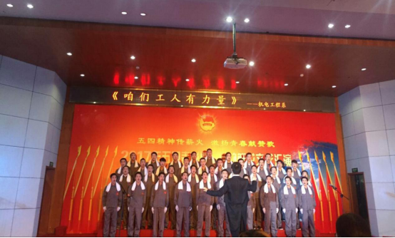 我系合唱队由辅导员石晶晶老师指导、15级朱慎胜同学指挥,39名16级学生共同组成。为期5周的训练同学们克服困难,积极发扬“五四”精神,为我系取得骄人成绩奠定坚实的基础。舞台上,同学们身穿具有专业特色的服装,激情嘹亮的歌声,震撼了台下的每一位评委。台下观众更是热情高昂,掌声和喝彩声交相辉映。赛后,“机电系歌曲给大家留下了深刻的印象,歌曲和服装充分彰显了系部专业特色,这些东西远远超出艺术作品本身!”院领导高度评价。