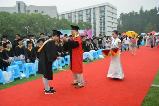 2017年上午8:00,2017届毕业典礼暨学位授予仪式操场上如期举行即使天上下着大雨也无法磨灭毕业生的热情随着各项奖项颁发和优秀代表致辞的结束毕业典礼也接近尾声接下来就是学位授予仪式pp电子官方网站机电工程系系主任:王代萍老师为机电工程系全体毕业生拨流苏,毕业生们身穿学士服,头戴学士帽,井然有序地进行仪式,王老师把毕业生们学士帽的流苏从右边拨到左边,并合影留念,这意味着毕业生们正式毕业了!