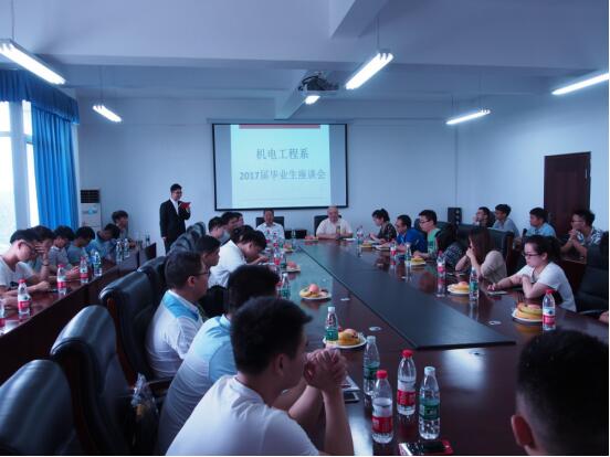 20176月14日下午北大学知行学院机电工程系在知远楼601会议室举行了2017届毕业生座谈会。参加本次座谈会的有系主任:王代萍、副主任:陈驰、副书记:杨英;机电工程系各位任课老师、辅导员以及2017届优秀毕业生代表:杜鹏程、陈信、陈庚、熊王宇等同学和机电工程系15级和16级各班学生代表和系学生会代表。本次会议的主题是对毕业生实习期间的工作学习生活情况进行了解,分享实习经验,优化教学方式。