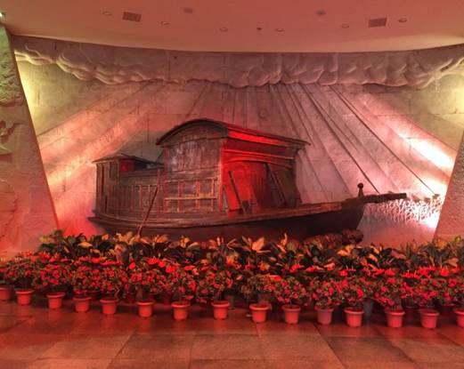 考察第一站就来到了浙江嘉兴市,我们有6名学生在当地的浙江凡华电子有限公司就业实习。早上7点十分,火车到达嘉兴站,一下火车,我们就感受到寒冬的凉意,空气中弥漫着湿意,虽经历了长途跋涉略有疲惫,但下火车后,精神也为之一振。时间尚早,这座城市也还在慢慢苏醒。我们的考察小团队也放慢了脚步,王代萍主任突然兴致盎然的问到:“你们知道嘉兴最有名的是什么吗?”我们纷纷回答当地的土特产品,王主任一一摇头,他揭晓答案是“南湖红船”,一语惊醒对一座城市的记忆:1921年7月23日,中国共产党第一次全国代表大会在上海秘密召开。会议临近结束,遭法租界巡捕的袭扰而被迫停会,根据上海代表李达的夫人王会悟的建议,8月1日会议转移到嘉兴南湖的一条游船上继续举行。在这条红船上,会议通过了第一个《中国共产党章程》,宣告了中国共产党的诞生,从此中国革命翻开了新的一页。