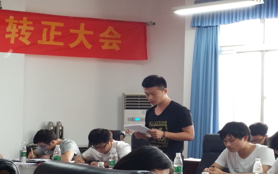 接着,会议讨论了凌维铭等6名预备党员的转正问题,各位预备党员向党支部提出了转正申请,并向党组织汇报了自己在考核期内的学习生活和思想状态,阐述了自己入党动机的发展变化情况。最后由学生党支部书记杨英同志宣布:“经正式党员投票表决,一致同意凌维铭等6名同志的转正申请”。