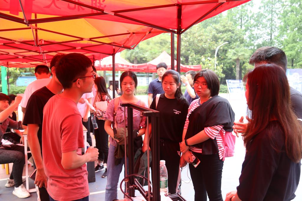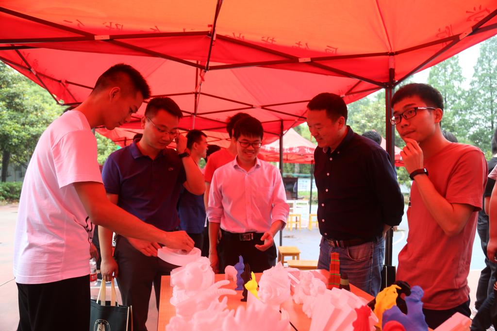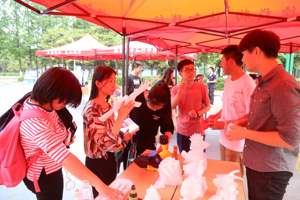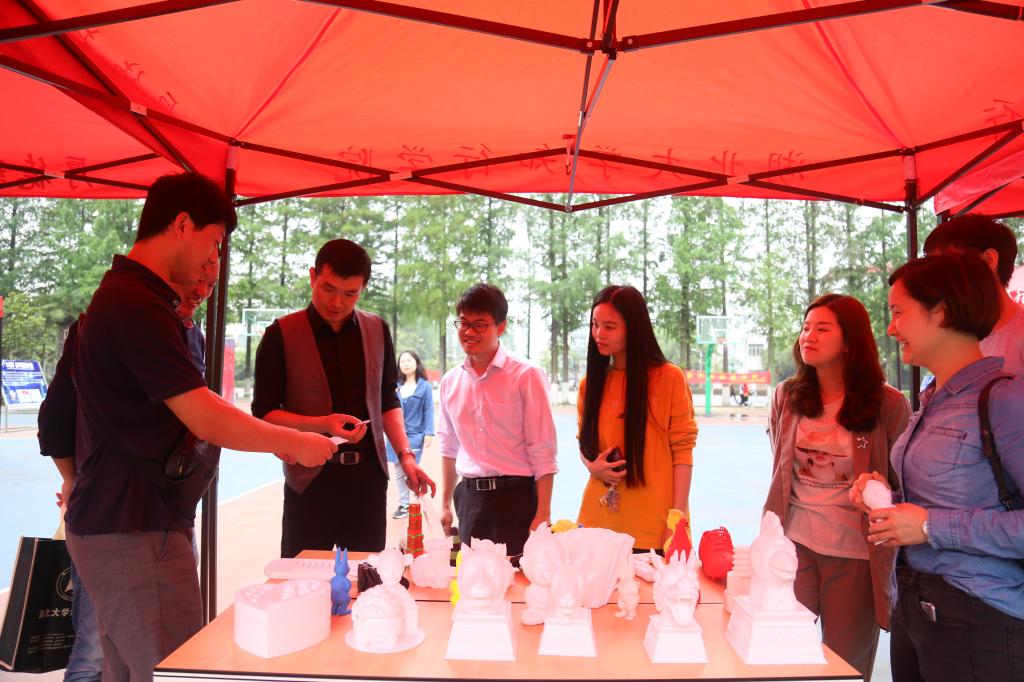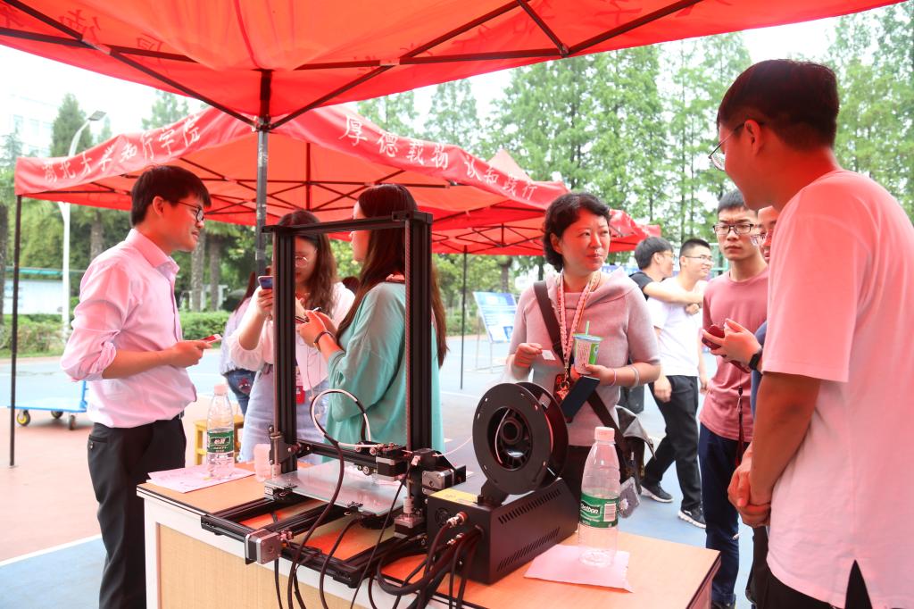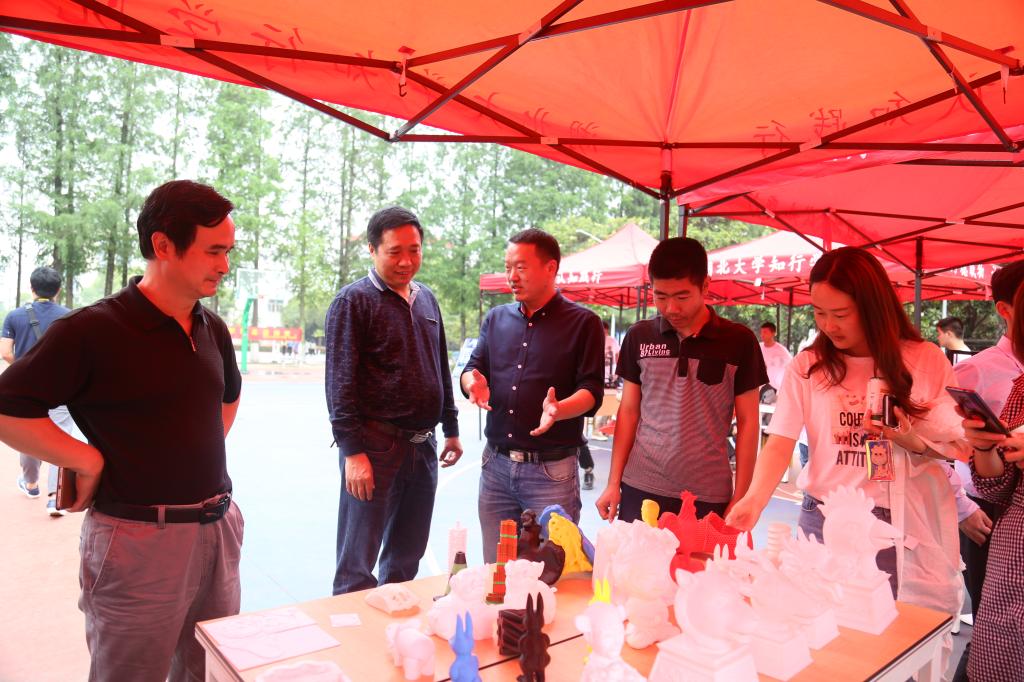 为展示pp电子科技育人成果,激发pp电子学生对科学、技术尤其是工程和设计创意的兴趣,促进3D打印技术与创新创意融合发展,培养造就“大众创业,万众创新”的主力军,pp电子官方网站于5月17日上午,在坤生园门口篮球场举办3D打印科普日活动,校长卜诗祯,副校长陈刚、黄智凌、王文凯,学工处处长王刚等校领导莅临现场,参与活动指导。