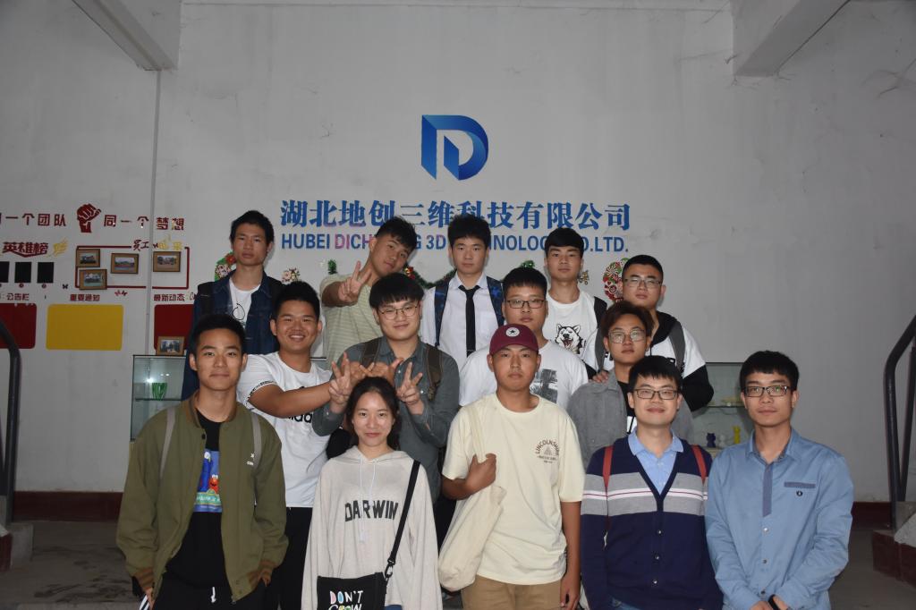 56日周一早上,pp电子官方网站组织部分师生代表赴湖北地创三维有限公司进行考察学习和培训。随行人员由宋涛、何将两位老师和13名学生代表组成。