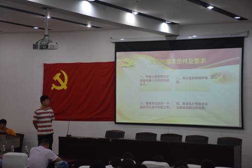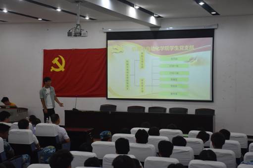 陈书记向同学们介绍中国共产党的光辉历史,介绍我党的发展历程,在新中国成长道路上的关键性作用,鼓励新生积极向党组织靠拢,强调了大学生作为先进分子,关系着未来党的事业的兴衰成败,应该加强党性修养教育,应该树立远大理想和坚定的政治信念,先进的思想觉悟,坚强的组织观念,必备的科学文化知识和高尚得道德情操,不断提升大学生的党性修养。